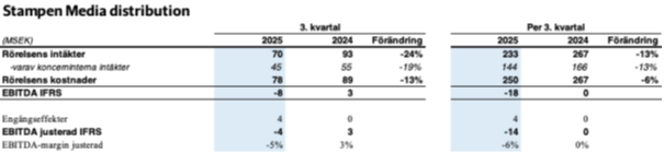 Under kvartalet har de nedbemanningar och besparingar inom både mediedelen och distributionsverksamheten som tidigare kommunicerats genomförts. Dessa kommer att få effekt från och med fjärde kvartalet. Samtidigt har annonsmarknaden utvecklats något mer positivt under sista delen av kvartalet efter mycket svaga sommarmånader.